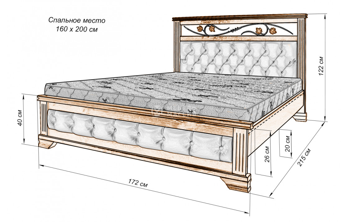Кровать Лозанна из массива. Осуществляется доставка на дом по Иркутску и Иркутской области.| Размер | Цена | |